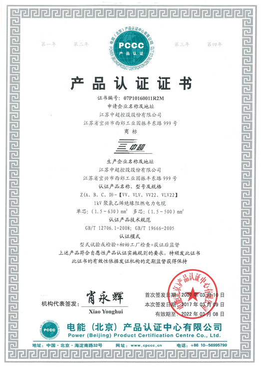 產品認證證書