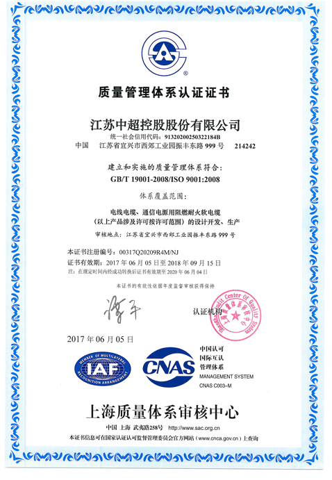 質量管理體系認證證書