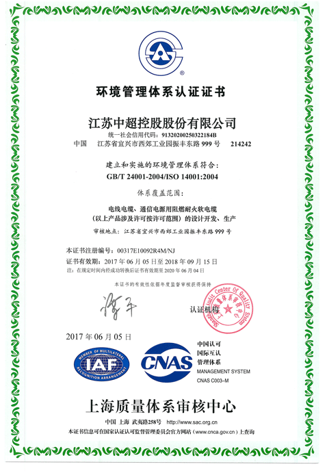 環境管理體系認證證書