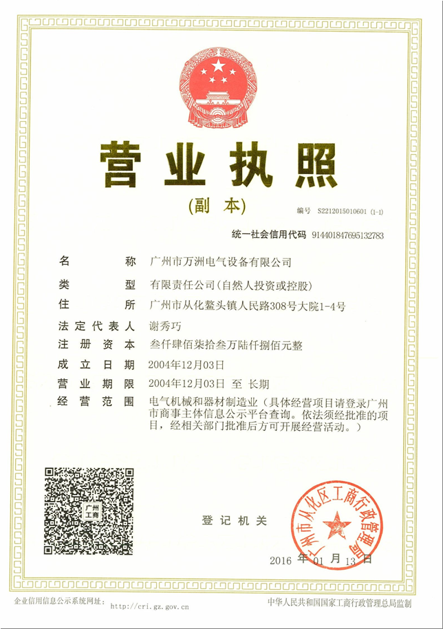 廣州市萬洲電氣設備有限公司座落于南方國際化大都市——廣東省廣州市從化明珠工業園鰲頭工業基地,占地面積40余畝,廠房建筑面積30000多平方米。公司成立于2004年,現有職工400多人,公司注冊資金叁仟叁佰萬元整。是專業生產和銷售:中、低壓成套設備、10KV箱(移動)式變電站、干式變壓器、高壓離相、共箱封閉母線、低壓母線槽(環氧澆注型、防水防火型、密集型)系列、電纜橋架、熱鍍鋅電線套管、鈑金加工及配件的現代化電力電氣產品的高新技術企業,是廣東省內目前唯一集服務、開發、設計、生產、銷售于一體的產品種類齊全的綜合性大型電力設備企業。點擊查看