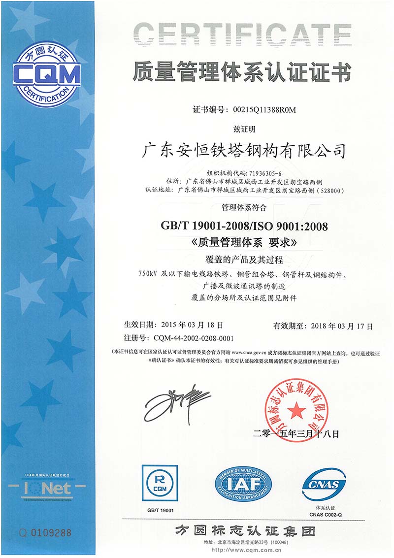 廣東安恒鐵塔鋼構(gòu)有限公司成立于1986年,前身為佛山供電局下屬公司,隨著電力體制的改革發(fā)展,廣東安恒公司已發(fā)展為同時(shí)擁有經(jīng)營(yíng)鐵塔生產(chǎn)的分公司和經(jīng)營(yíng)電力金具的控股公司。公司主營(yíng)輸電設(shè)備設(shè)計(jì)、制造;鐵塔、金屬構(gòu)件設(shè)計(jì)、制造、安裝;電力技術(shù)咨詢;電力安全工具檢測(cè),金屬材料測(cè)試;銷售:輸電、變電、配電設(shè)備和金屬材料(不含貴金屬);電力金具設(shè)計(jì)、制造、安裝;普通貨運(yùn);貨運(yùn)進(jìn)出口、技術(shù)進(jìn)出口;復(fù)合材料產(chǎn)品的生產(chǎn)與銷售。(依法需經(jīng)批準(zhǔn)的項(xiàng)目,經(jīng)相關(guān)部門批準(zhǔn)后方可開(kāi)展經(jīng)營(yíng)活動(dòng))。點(diǎn)擊查看
