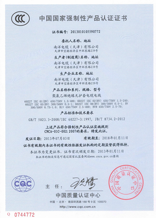 南洋電纜(天津)有限公司成立于2009年,是廣東南洋電纜集團股份有限公司的全資子公司,位于天津市空港經濟區中環東路239號,總投資人民幣10億元,生產基地面積20萬平方米,年生產能力為30億元。是國內專業制造電力電纜以及核電站用電纜、風力發電用電纜、船用電纜和變頻節能電纜等特種電纜的大型企業。 廣東南洋電纜集團股份有限公司創建于1985年,是我國最大的電線電纜制造企業之一。擁有廣州南洋電纜有限公司(兩個廠區)、南洋電纜(天津)有限公司及廣東汕頭四個大型的生產基地。凈資產人民幣16億元,生產基地總面積50萬平方米,年生產能力100億元。 2008年2月1日集團公司在深圳證券交易所成功掛牌上市,股票簡稱:\\\"南洋股份\\\",股票代碼:\\\"002212\\\"。 南洋電纜(天津)有限公司擁有從國外引進及國內配套的各類先進生產設備及檢測設備多臺,擁有達到國際先進水平的35kV及以下交聯電力電纜三層生產線及德國西科拉(SIKORA)公司自動在點擊查看