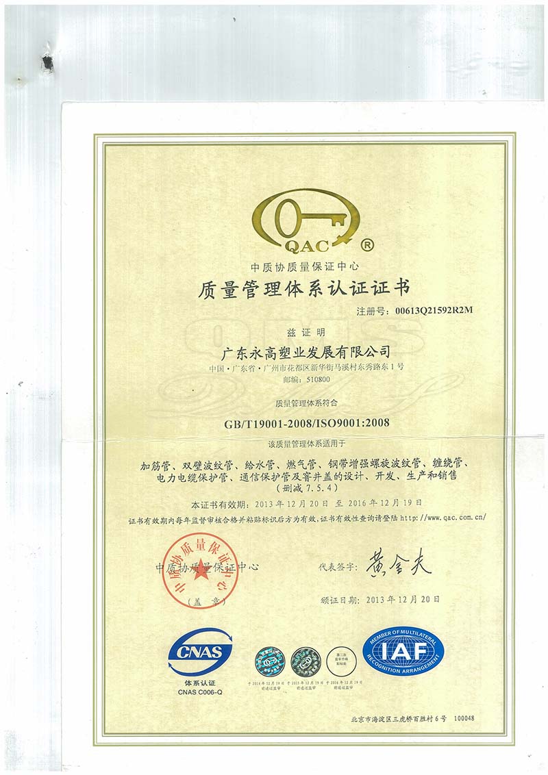 廣東永高塑業發展有限公司系國內A股上市的規模最大的塑料管道公司---永高股份有限公司(股票代碼:002641)的全資子公司。公司位于廣東省廣州市花都區,占地面積22萬平方米,是一家專業從事化學建材研發和生產制造的高新技術企業,系中國塑料加工工業協會會員單位,廣東省塑料加工工業協會常務理事單位,廣東省質量檢驗協會常務理事單位,廣東省標準化協會會員單位。 公司自創建以來,開拓創新,銳意進取,努力實施科技促發展和打造一流品牌的戰略;堅持“市場第一用戶至上、品牌為根、誠信為本”的經營方針。在短短幾年內快速發展,成為國內同行業知名品牌。目前公司產品銷售網絡覆蓋國內20多個省市和地區,特別在華南地區的廣東、海南、湖南、廣西、福建等地,具有很高的品牌知名度和市場占有率。已先后通過IS09001:2008質量管理體系認證、IS014001:2004環境管理體系認證、GBlT28001-2001職業健康安全管理體系認證、并獲得“廣東省守合同點擊查看