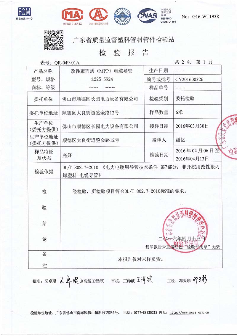 佛山市順德區長園電力設備有限公司位于佛山市順德區大良鳳翔工業區。 本公司(原名:順德市德勝金屬構件廠)成立于1990年,一直服務于社會,以電力、電信、交通道路照明等系列產品為主。由于業務擴展,于1999年改名為佛山市順德區長園電力設備有限公司。 本公司擁有寬廣的生產基地,占地面積約20000平方米。有、各種大型設備:400噸床沖、80噸沖床、剪板機、彎折機、車床、焊機40臺已上、塑料擠出機等多臺設備、具有十多年的生產經驗,技術力量雄厚,能因應客戶要求生產出優秀產品。流動資金現貨充足,保證公司良好運作。 公司目前,能生產各種10kv電力鐵塔及鋼結構產品、交通標志桿、道路照明燈桿、電信發射塔微波塔,亦因應社會發展,配合電力、電信向地下走的方針,專業生產各種規格電力、電信用的HDPE地下預埋管及配件、PE非開挖專用頂管、MPP單壁波紋管、MPP非開挖專用頂管PVC-C電纜套管、涂塑鋼管、玻璃鋼管。 公司的質量方針為:產品質點擊查看