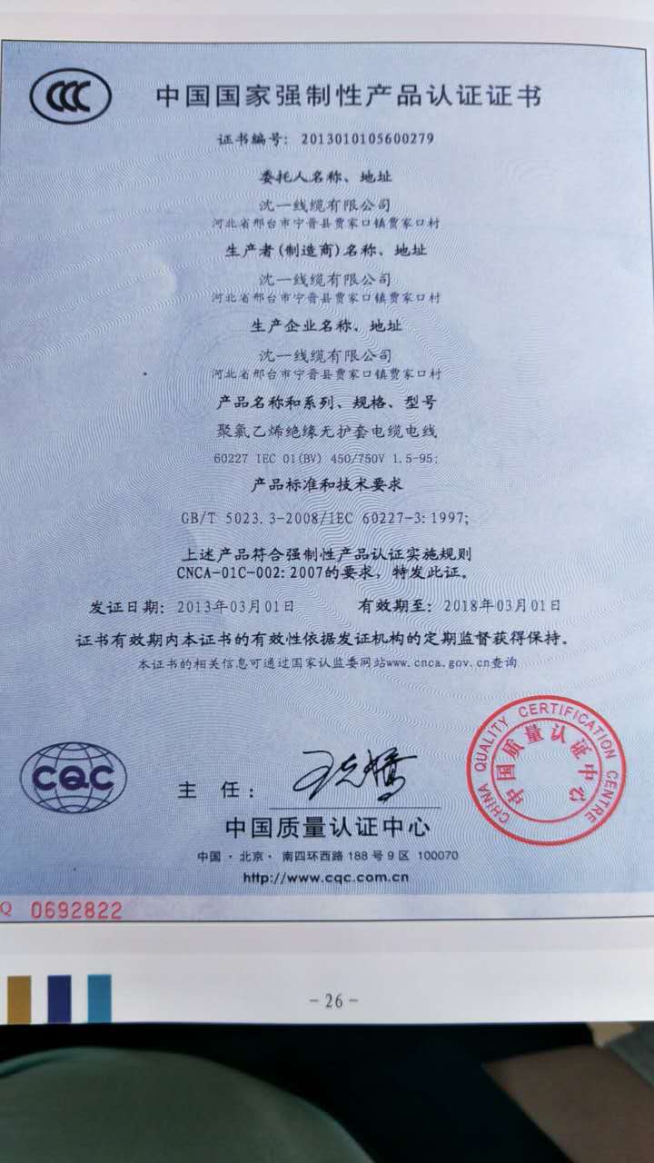 沈一線纜有限公司(原沈陽交聯電纜廠一分廠)成立于1993年10月,公司位于河北省寧晉縣西城工業聚集區,占地面積6.8萬余平米,固定資產3600萬元。先后獲得全國工業產品生產許可證、ISO9001:2008國家質量體系認證和CCC國家強制性產品認證,電纜被中輕質量保證中心認定為中國知名電線電纜質量公證十佳品牌的稱號,被河北省消費者協會評為誠信單位。連續13年被評為納稅先進企業。公司擁有各種電纜生產設備40多臺套,生產工藝先進,檢測手段完善,主導產品“鵬亮”牌35KV及以下電力電纜。公司憑借過硬的產品質量和良好的售后服務,在市場獲得較高聲譽,產品廣泛應用于我國能源、交通、水利、電力建設等領域。 企業秉承“聚賢才、鑄精品、創未來”的核心理念,堅持質量效益型、科技創新型、環保節約型的發展道路。沈一線纜有限公司愿與各界一道,創新發展,服務社會,共創未來。點擊查看
