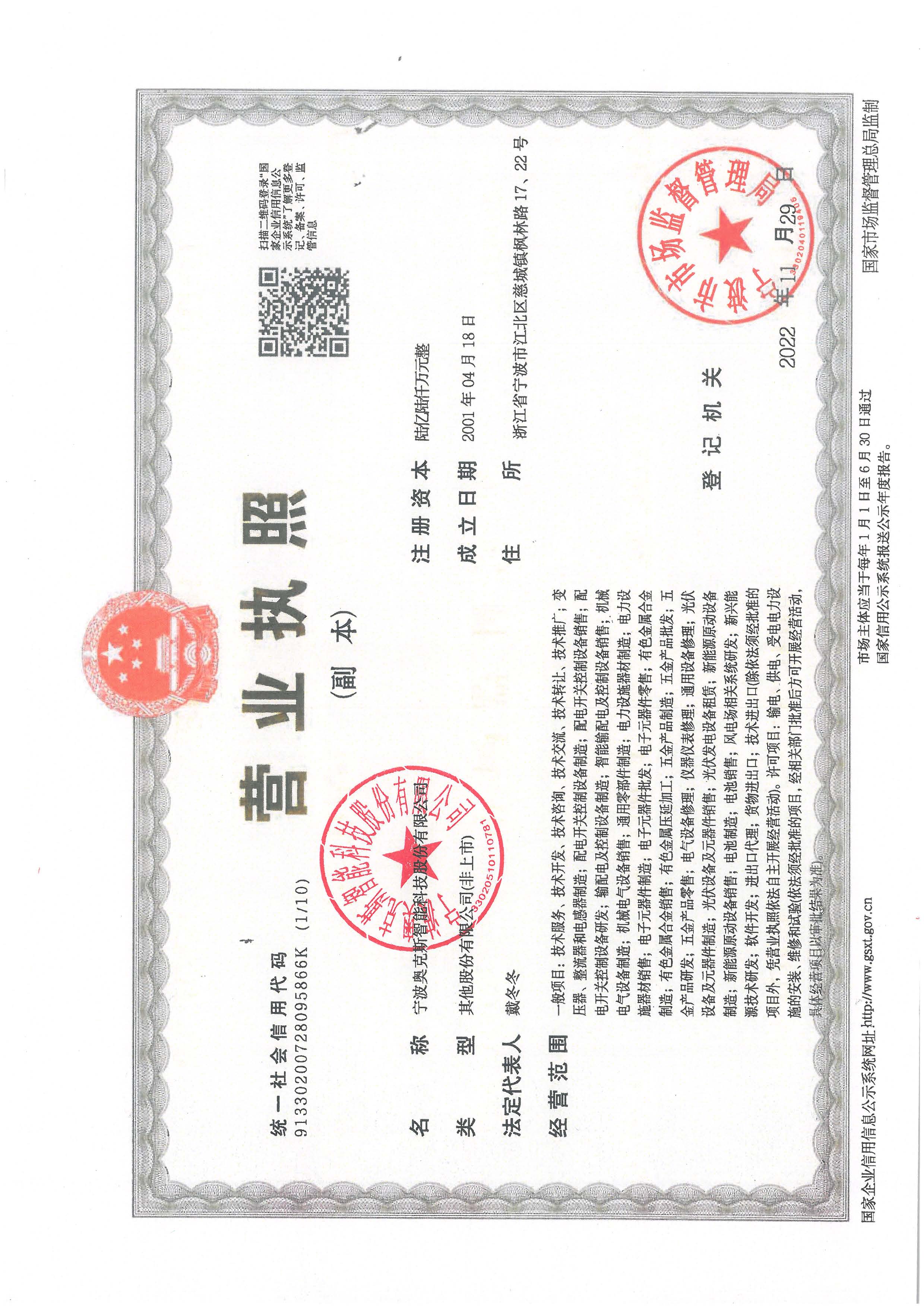寧波奧克斯智能科技股份有限公司成立于2001年,總投資近叁億元人民幣,注冊資本金:67724.6萬元整。是奧克斯集團下屬的寧波三星醫療電氣股份有限公司控股公司,現有員工2000余人,其中:中、高級工程師40余人,研發設計人員60余人,生產技術人員80余人,占地面積約20萬平方米,年銷售收入達13億元人民幣。是國家高新技術企業,浙江省名牌產品,信息化標桿企業,并擁有國家級企業工程技術中心,已通過了ISO9001質量管理、ISO14001環境管理和職業健康安全管理認證及國家強制性產品(CCC及CQC)認證。公司主導產品包括:35kV級及以下干式變壓器;35kV級及以下油浸式變壓器、35kV級及以下非晶合金變壓器、電能計量箱(歐式、美式、地埋式、燈箱式、光伏變)、高、低壓成套開關設備、小三箱(配電箱、電纜分支箱、電能計量箱)等產品。點擊查看