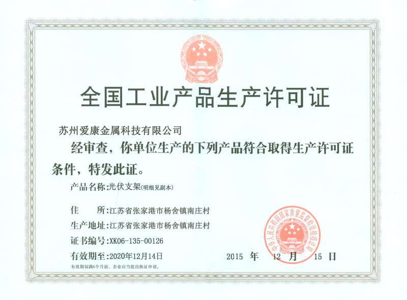 自成立以來,憑借優質的服務,截止到2021年底,全球累計出貨量超40GW。出口國家超80多個。 公司專業研發、生產、銷售光伏支架系統及相關配件,產品包括固定支架系統、新材料支架系統、跟蹤支架系統及各種定制型支架,同時承攬大型光伏電站項目的安裝施工業務。 公司自成立以來,不斷汲取歐美、日本等地先進技術,自主研發和生產具有愛康特色的支架產品,形成了多款適用于各種復雜安裝環境且擁有自主知識產權的安裝支架。 愛康支架年產能15GW,位居中國光伏安裝支架行業前列。主要生產基地位于江蘇省張家港市,廠房占地面積57000平米,光伏支架自動化生產線30余條。愛康一貫注重產品質量管理,從原材料進場到加工制造以及產品出貨的每一環節,都進行嚴格的質量檢驗,確保品質穩定,因此生產的光伏支架產品,品質居同行前列,深受國內外客戶的好評。點擊查看