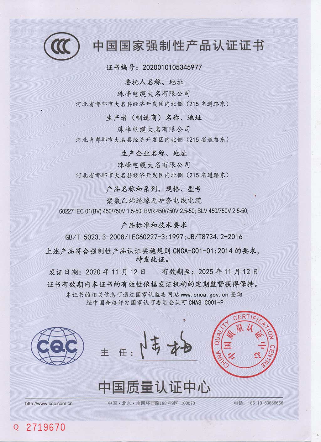 珠峰電纜大名有限公司是按照現(xiàn)代化企業(yè)制度建立的電線電纜專業(yè)制造企業(yè),成立于2014年10月10日,位于河北省邯鄲市大名縣工業(yè)園區(qū)。公司現(xiàn)有員工400多人占地面積6萬平方米,建筑面積4萬平方米,固定資產(chǎn)10億6000萬元,現(xiàn)有生產(chǎn)設(shè)備幾十套,檢測設(shè)備儀器30多套,年生產(chǎn)能力達上億元人民幣。公司通過1S09001國際質(zhì)量管理體系認(rèn)證,并獲得工業(yè)生產(chǎn)許可證證書、國家強制性產(chǎn)品CCC認(rèn)證證書,產(chǎn)品歷年來經(jīng)國家檢測中心。省,市等質(zhì)檢部門抽檢均合格。公司生產(chǎn)的產(chǎn)品主要有:護套線、塑銅線、消防線、防火電纜、電力電纜、控制電纜等各種型號的電線電纜。我們憑借豐富的制造經(jīng)驗、雄厚的技術(shù)力量、完整的檢測設(shè)備,為眾多國家重點工程提供了優(yōu)質(zhì)的產(chǎn)品及服務(wù),并在用戶中享有較高的知名度和美譽度。產(chǎn)品廣泛應(yīng)用于電力、建筑、石化、軍工、機械制造、電子、科研、通訊等領(lǐng)域。暢銷全國30多個省市。點擊查看