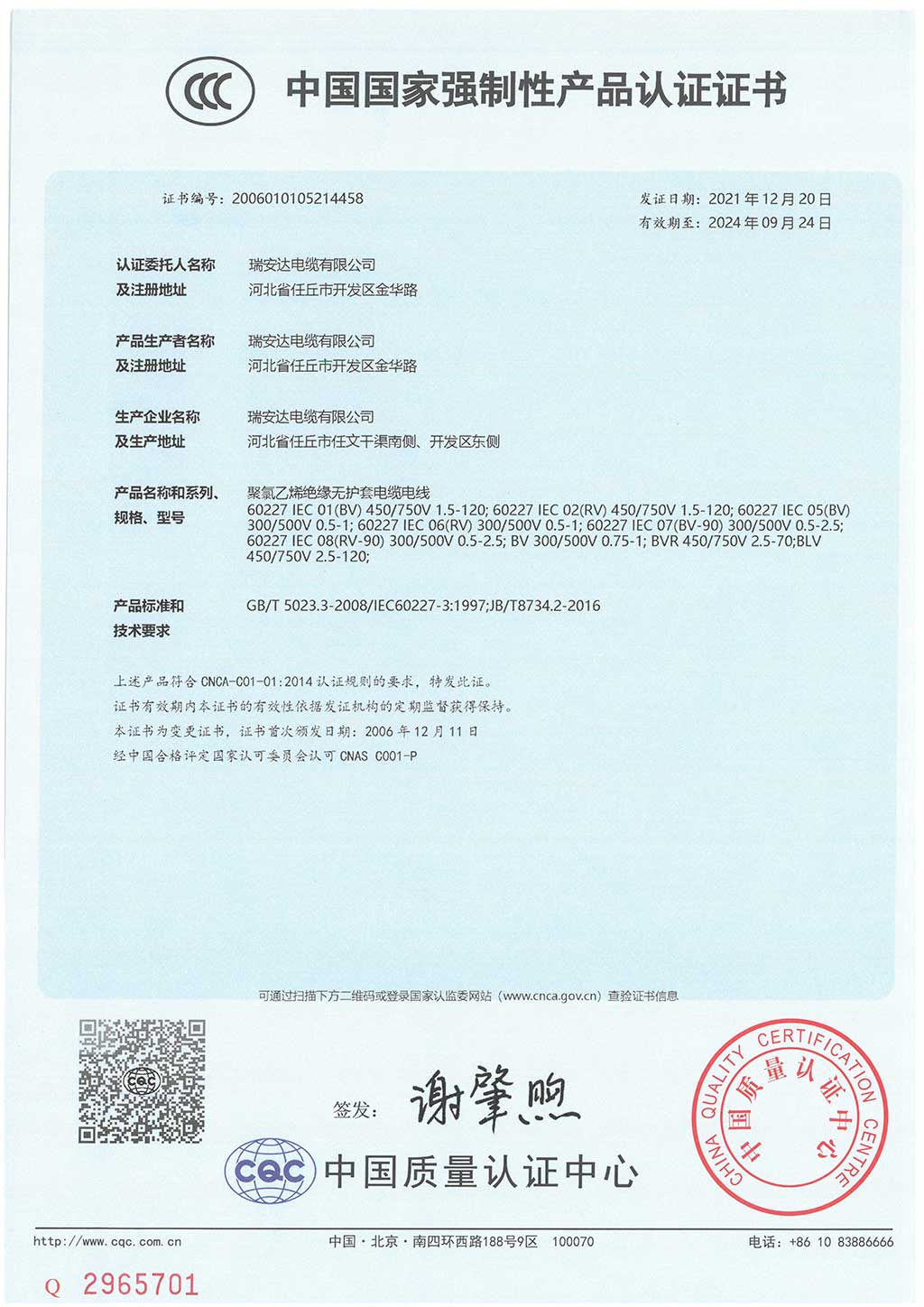 瑞安達電纜有限公司創建于2005年初,屬于國家高新技術企業、國家大型電纜制造、研發企業,煤礦用電纜、裝備用電纜,在同行業中名列前茅。公司位于河北省任丘市經濟技術開發區,占地面積25萬平方米,建筑面積15萬平方米,現有固定資產10億元。公司現有員工268余人,其中高級工程師5名,工程師10名,設計研發人員42名,專業技術人員40余名。現擁有3個生產廠區,各類生產設備500多(臺)套,檢測試驗設備100多(臺)套。 生產銷售:電線電纜、電纜附件;加工銷售:銅、鋁、鋁合金制品、橡膠制品、塑料制品;銷售:光纖光纜及其組件、電纜原材料、鋼材、木材、工業線束、通訊產品連接件、電子插接件、機械設備、建筑裝飾材料、金屬材料、化工產品(化學危險品除外)、充電樁、新能源汽車(國家機動車主管部門許可的機動車)、辦公用品、通訊設備、電子產品;計算機軟硬件及附屬設備的研發、銷售;技術咨詢服務;企業管理咨詢服務;貨物進出口點擊查看