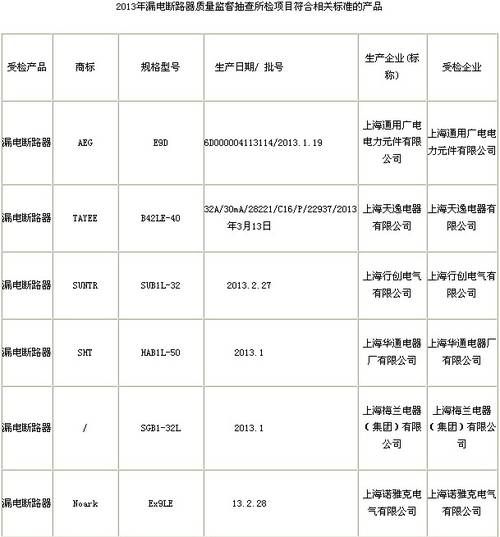 上海市質量技術監督局5日通報2013年上海市漏電斷路器產品質量監督抽查結果,不合格3批次。