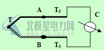 不使用補償導線引入的測量誤差; 不使用補償導線引入的溫度測量誤差分析:根據均質導體和中間溫度定律。(同性質導體相接不能產生熱電勢)如圖