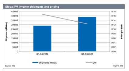 根據(jù)IHS最新發(fā)布的報(bào)告顯示,今年1-9月,全球太陽能逆變器出貨量同比增長35%,價(jià)格則同比下降26%,從而也限制了市場(chǎng)收益的增長。