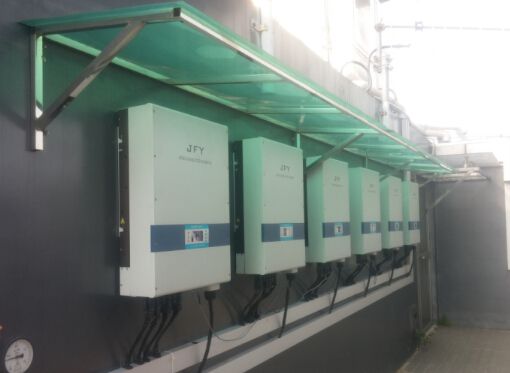 (2)室外安裝時,逆變器上面要裝防雨防曬蓬,避免陽光直射和雨水浸泡。逆變器不直接暴露在太陽或其它熱源下。
