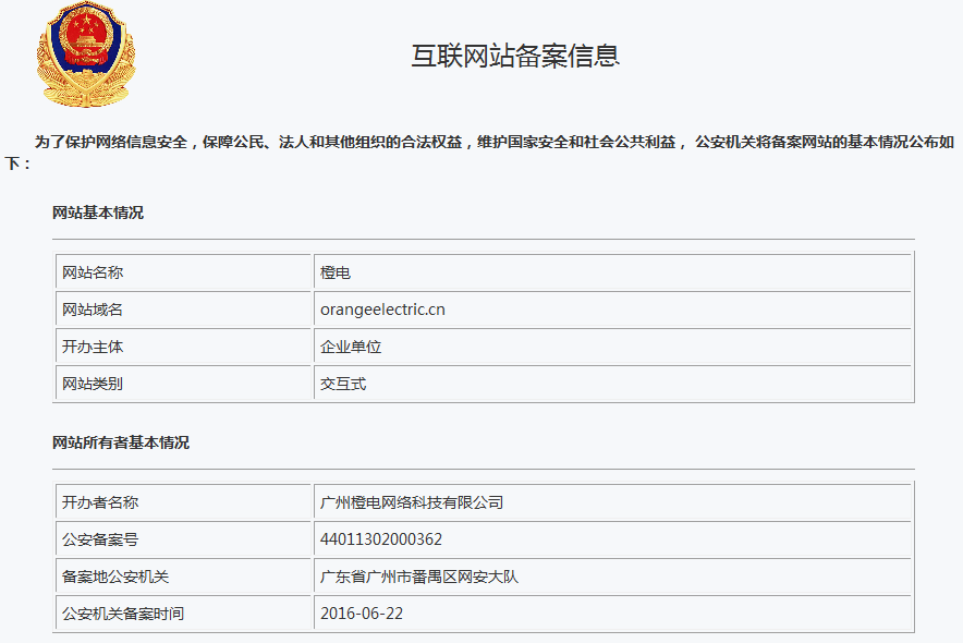 2016年8月3日,廣州橙電網絡科技有限公司宣布其正式獲得由廣東省通信管理局頒發的《中華人民共和國增值電信業務經營許可證》(編號:粵B2—20160422)(簡稱ICP許可證),獲準經營第二類增值電信業務中的信息服務業務。