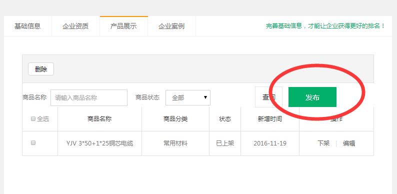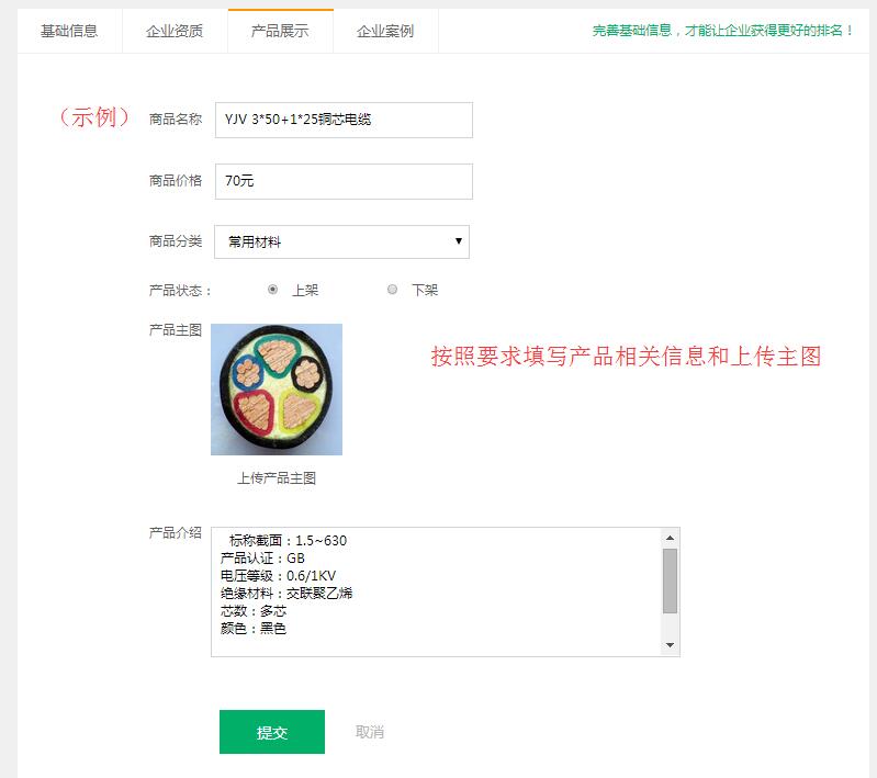 第三步:根據網站提醒填寫所需展示產品的信息和上傳產品主圖,然后點擊“提交”。